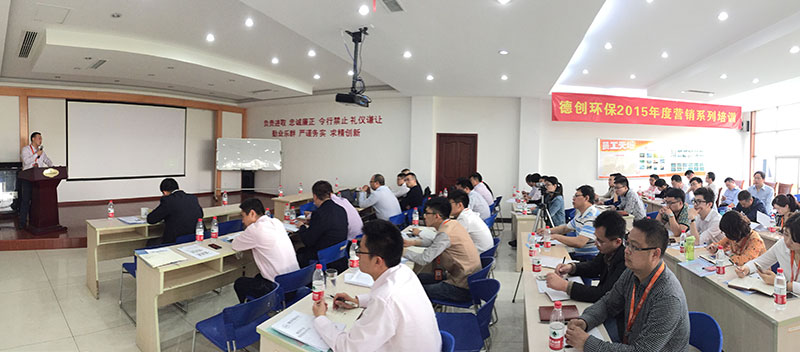 4月2-3日,德創環保人力資源管理中心在一樓培訓室舉行為期2天的2015年一季度營銷培訓,全體營銷人員參加此次培訓,公司及各事業部高層領導現身擔當培訓講師。