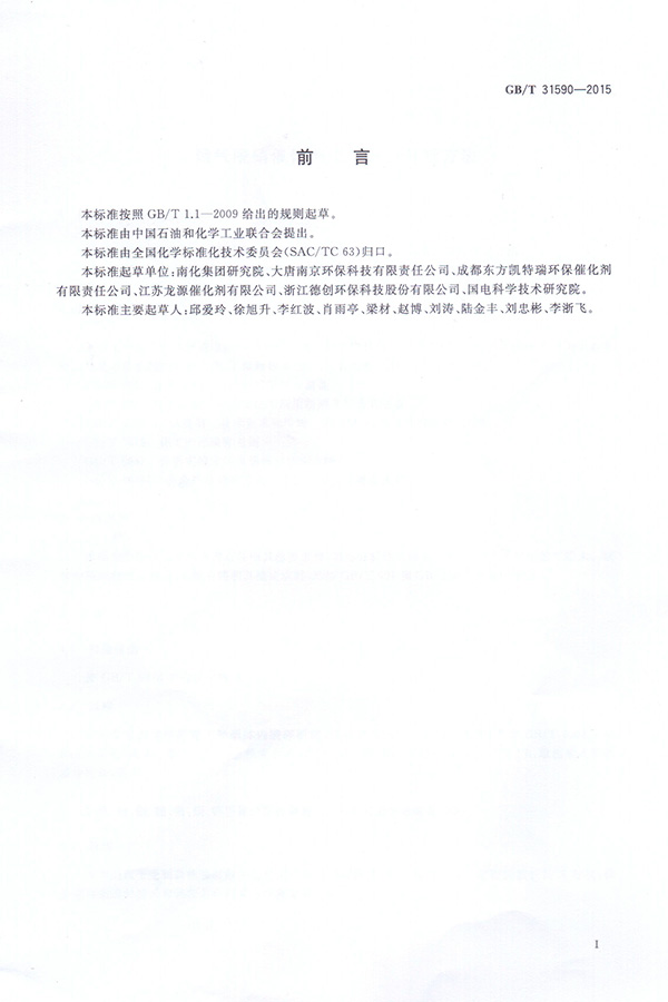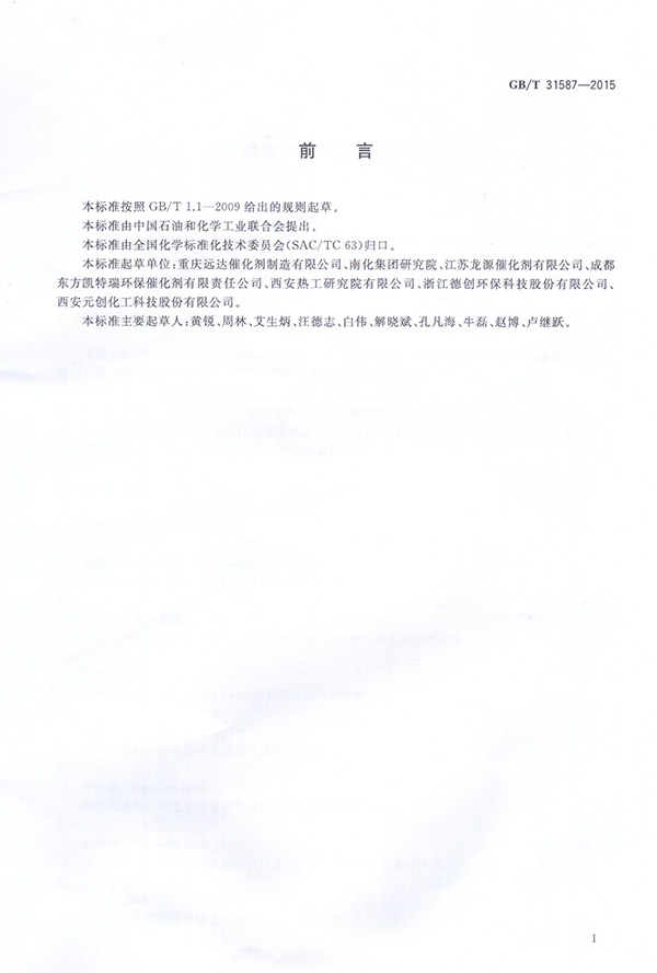 德創環保參與起草《蜂窩式煙氣脫硝催化劑》《煙氣脫硝催化劑化學成分分析方法》國家標準