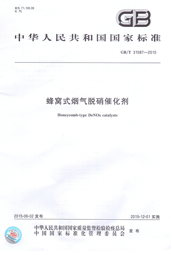 德創環保參與起草的《蜂窩式煙氣脫硝催化劑》(GB/T 31587-2015)、《煙氣脫硝催化劑化學成分分析方法》(GB/T 31590-2015)于近日頒布。德創環保是國內少數幾家能同時生產蜂窩式與平板式煙氣脫硝催化劑的企業,此次參與起草國家標準正彰顯了德創環保在行業內的權威與實力。