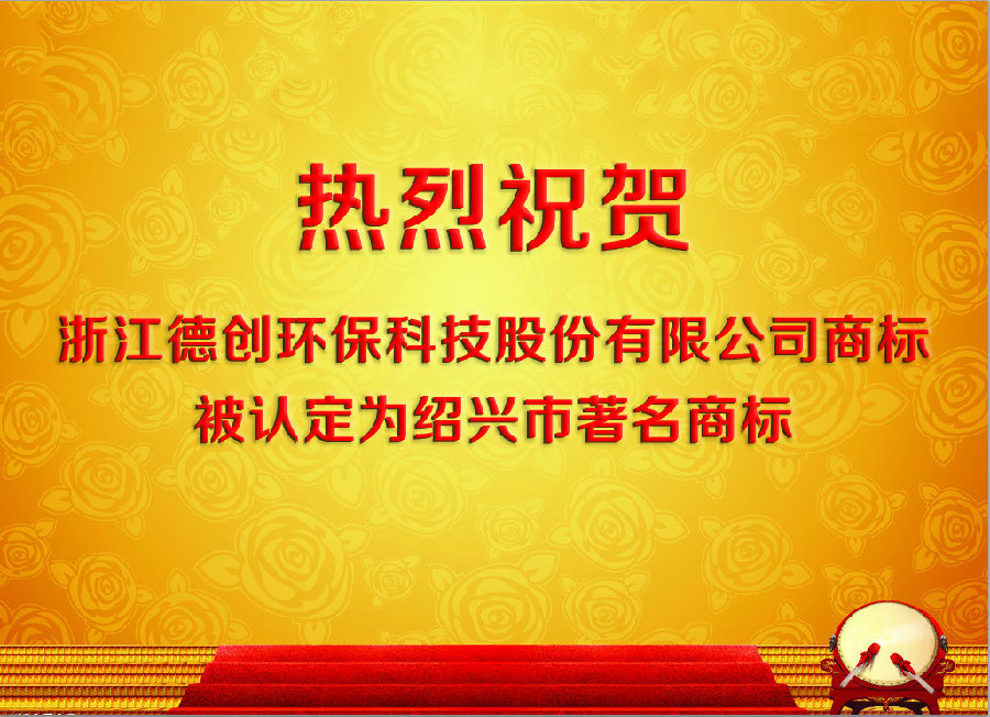 德創環保商標認定為紹興市著名商標 2016-01-28 17:00:02 經紹興市市場監督管理局認定,公司商標被認定為紹興市著名商標。德創環保將以此為契機,圍繞公司發展戰略,不斷擴大德創品牌影響力,持續提升德創品牌的認可度和知名度。