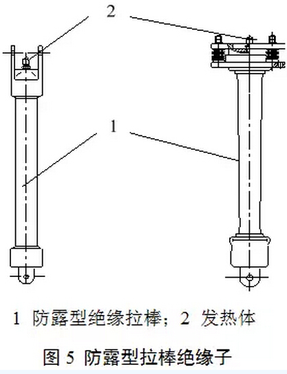 防露型拉棒絕緣子由外部的防露型絕緣拉棒和內部的發熱體組成,其結構示意圖如圖5所示。可直接裸露在煙氣中。具有抗拉伸強度高(額定拉伸負荷100kN),高溫絕緣性能好,抗熱震性的溫