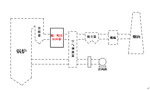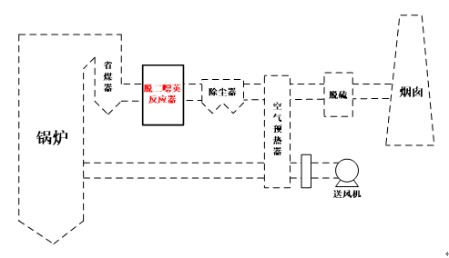 在無脫氮需求的系統中,僅需選擇鍋爐合適位置安裝脫二噁英催化劑的空間,并使鍋爐尾部煙氣均勻通過催化劑進行催化氧化反應即可。脫二噁英催化劑屬于寬溫催化劑,在180-420℃均能有效的脫除二噁英,故在該溫度區間內脫二噁英催化劑可安裝在鍋爐的不同位置。
