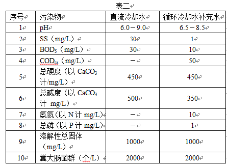 電廠用水主要為循環冷卻水補水及鍋爐補給水水源。循環冷卻水補水水質可參照以下表二水質標準。