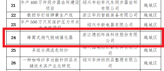德創(chuàng)環(huán)保“蜂窩式煙氣脫硝催化劑”被評(píng)選為紹興市發(fā)明專(zhuān)利產(chǎn)業(yè)化項(xiàng)目
